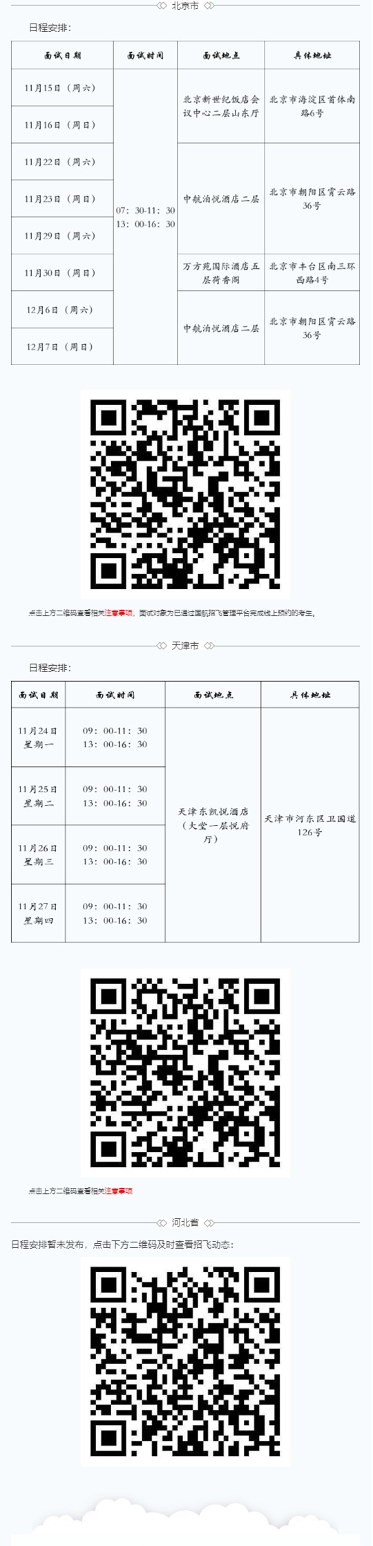 2026年,我校与中国国际航空公司在北京市、天津市、河北省开展校企合作招飞工作,预选初检日程安排如下。